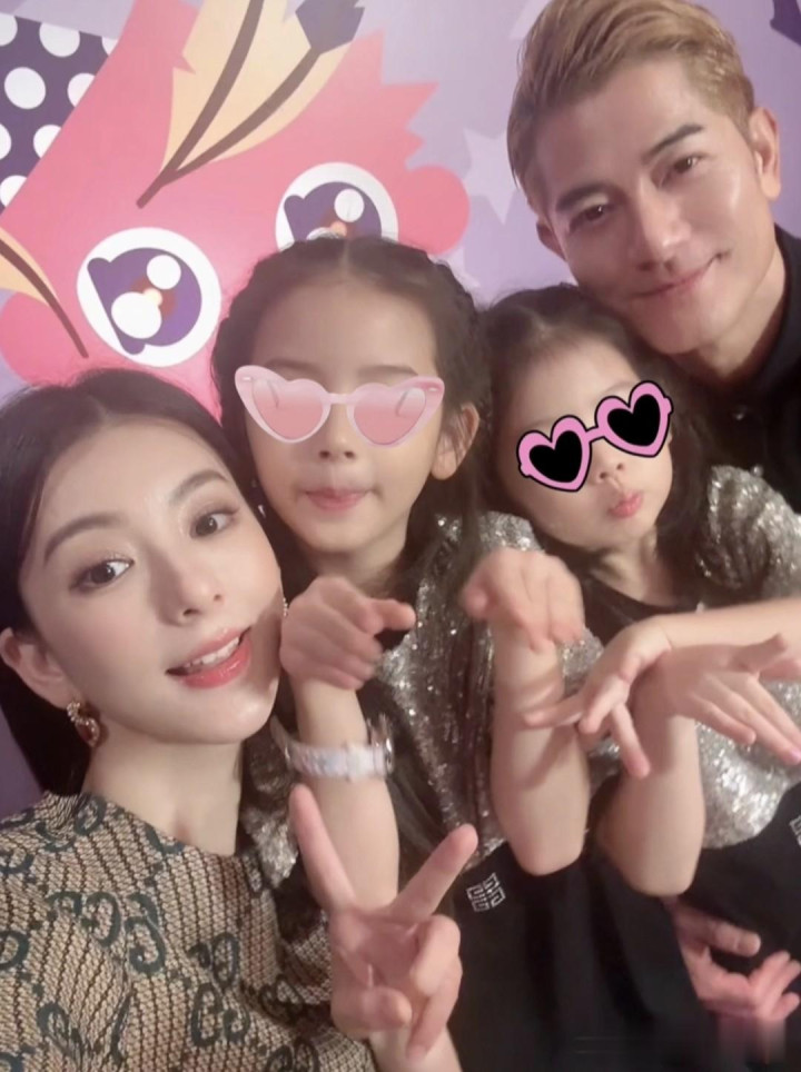 四口人拍照的时候,郭富城的手还搂着方媛的腰呢,细节都好甜蜜,夫妻感情非常稳定。两个女儿以前都是爸妈各自抱一个,今年考虑到方媛的身体,孩子们都不让抱了,站在父母两侧也很有爱,大女儿和方媛一起比心,母女俩好默契,家庭氛围超级温馨。