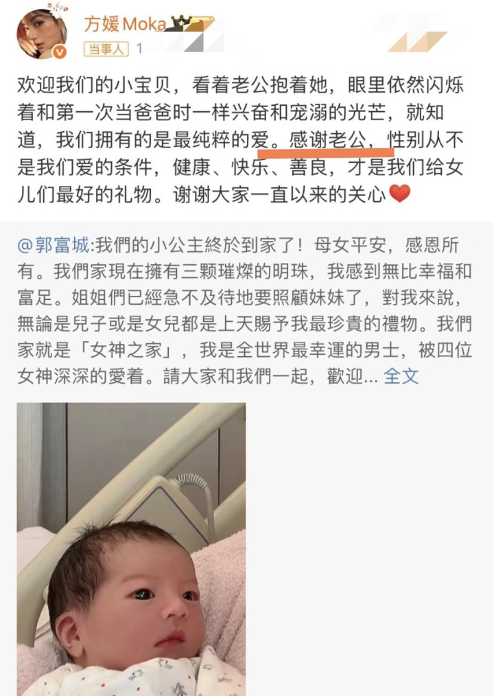 方媛也是拥有高情商的,孩子一出生,她就发文“感谢老公”,不提自己有多辛苦,字里行间都是描述美满家庭,给足了老郭面子。