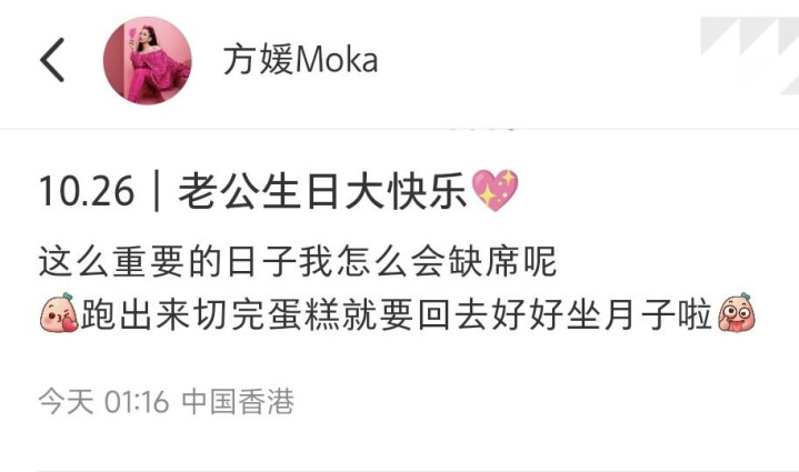 都知道方媛刚生完三胎不满一个星期,但赶上老公60岁整数生日,她还是从月子中心跑出来了,还俏皮发文道:这么重要的日子我怎么会缺席呢,切完蛋糕就要回去好好坐月子啦,后面还加了个可爱的表情,能感受到方媛欢快的心情,生完宝宝一身轻松啊。